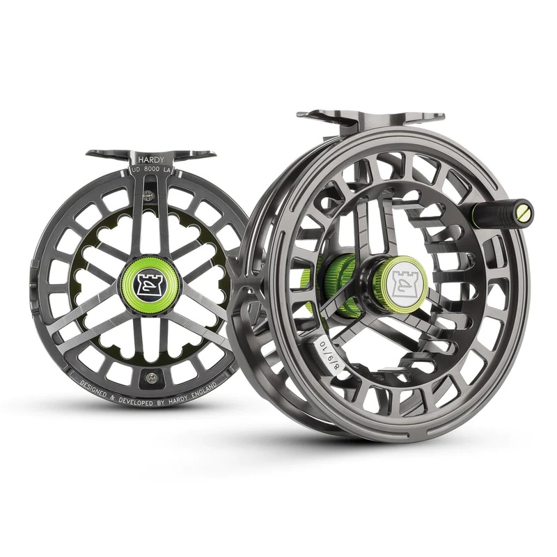 The scaled multi-pad drag system is also unregulated, meaning fine adjustments of the drag pressure over a large window is possible. Available in two colourways, Gunmetal and Black and a mid-range price point, this reel takes the modern Hardy performance fly reel to the next level! A lightweight disc drag reel in its purest form, the all-new Hardy Ultradisc UDLA features everything you need and nothing you dont in a disc drag fly reel. With an innovative new frame design, this reel sets a new standard in lightweight performance reels whilst allowing the use of ultra-thin fly lines and running lines as well as leader – systems popular in modern fly fishing for Trout and Salmon.