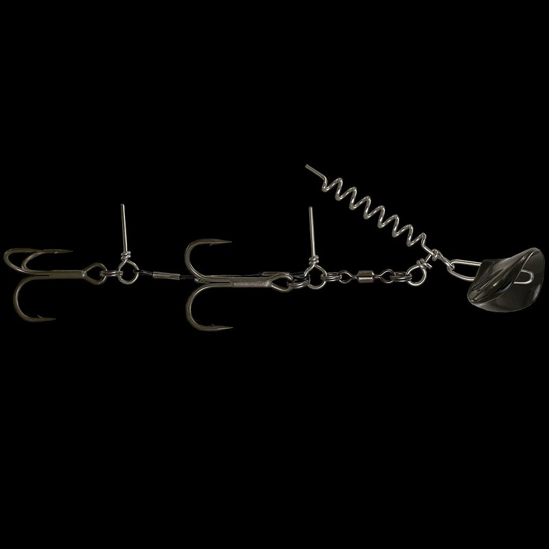 Stinger harnesses for the Headbanger FireTail. Designed for normal and slow retrieves, preferably with pauses that often turn the bait 90 degrees to the side, these RockerHeads produce action previously unseen in soft baits. The weighted zinc RockerHead is perfect for the slightly deeper fishing. If needed, the RockerHead is easily replaced with normal weights by placing the weight on the snap, which is then attached to the screw.