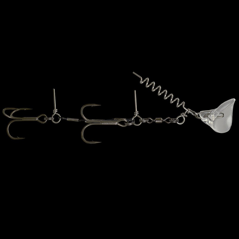 Headbanger Rockerhead Stinger ShallowStinger harnesses for the Headbanger FireTail. Designed for normal and slow retrieves, preferably with pauses that often turn the bait 90 degrees to the side, these RockerHeads produce action previously unseen in soft b