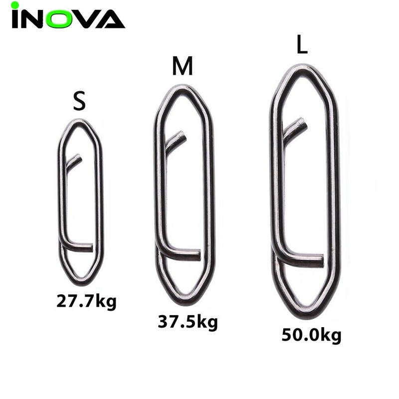 INOVA SPIRE LINKS are designed with a pointed top and bottom this allows the shock-leader knot and lead to sit perfectly in the middle of the link. Available in 3 sizes, small, medium, and large.