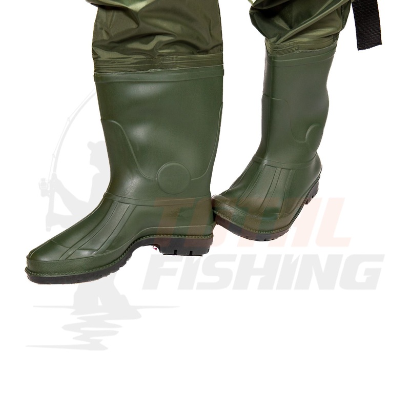 Exceptional quality chest waders for protection up to the arm pits. These waders feature a tightening waist strap to keep it from sagging but still provide ample space for bigger bodied anglers. The straps wrapping around both shoulders are comfortable and doesn’t put strain on your shoulders even when wearing it for long periods of time. A very durable and tough boot protects your feet from stones and sharp objects.