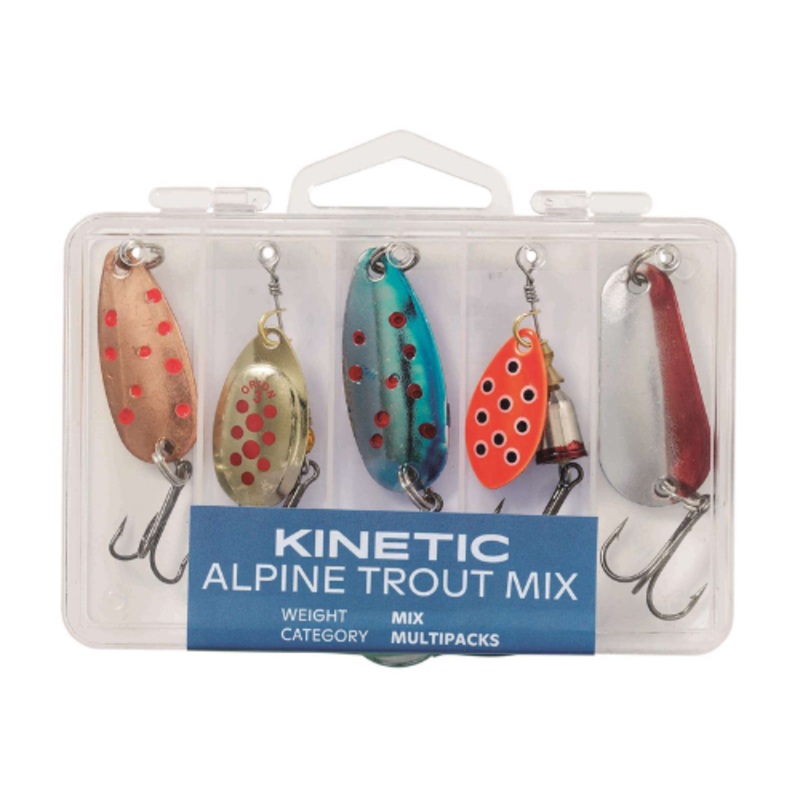 Cold lakes in the mountains often hold a good stock of trout and char. This mix is perfect for those species but will also do very well in rivers and lakes. Not to mention for perch fishing. A very versatile mix with the best spinners and spoons.Lead free