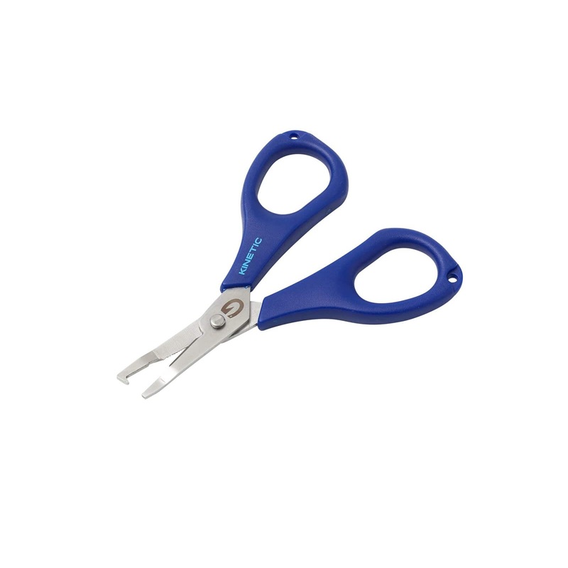 **Kinetic SS Multi Scissors 4,5"**Kinetic Multi Scissors easily and safely cut braid and mono lines. The oversized finger holes feature nonslip grips for precise, comfortable handling. A must-have in every angler's kit.* Stainless steel* Cutter* Splitring