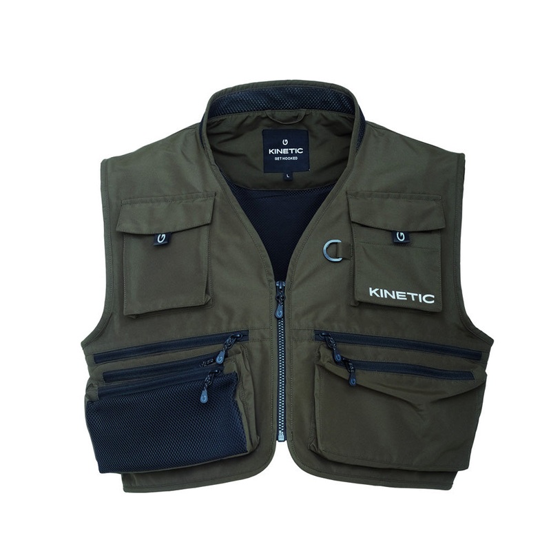 Well-equipped lightweight fly vest with a mesh lining for high breathability and a soft, padded collar for extra comfort. This vest has the necessary storage for all your fishing necessities.100% polyester pongee Oxford with PU coatingWaterproof +8.000mmBr