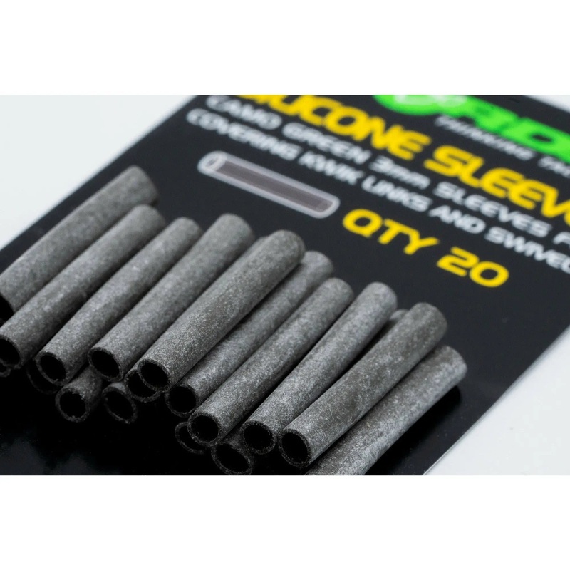 Korda Silicone Sleeves Weedy GreenTheseSilicone Sleeves were originally part of our Running Rig Kits and are designed to cover the swivel and wire loop on a lead, but due to demand we started selling them separately. Used in this way they will make any rig