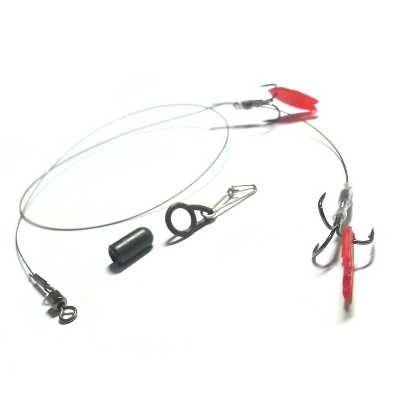 Made from 7 x7 strand wireSemi barbed super sharp treble hooksFree, low resistance run ring and buffer bead in every packAvailable in size 6ColourBlack