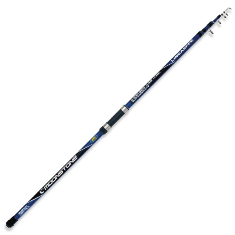 The Lineaeffe Moonstone telescopic fishing rod is ideal for bottom fishing and demanding fishing techniques, thanks to its Multigraphite fiber construction and its 100-200 g parabolic action. It is equipped with double-leg linked SiC guides and threaded reel seats.