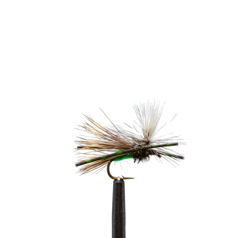 The Lime Madam X is a vibrant and versatile attractor pattern that is a standout choice for any anglers fly box. Known for its eye-catching lime green body and enticing movement, this fly is highly effective for imitating a range of terrestrial insects, in