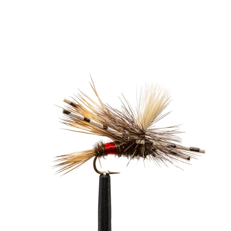 The Royal Madam X is a versatile and effective attractor fly pattern designed to imitate various insects such as hoppers, cicadas, stoneflies, and dragonflies. Ideal for targeting trout, bass, and panfish, it features a peacock herl and red floss body, whi