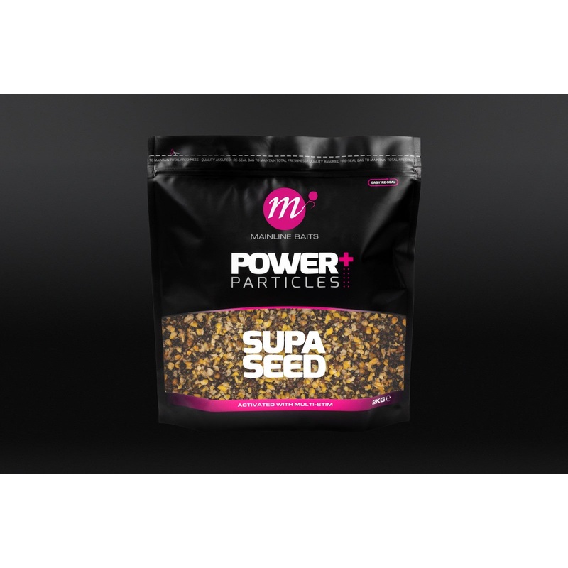 Mainline Power+ Particles Supa Seed 2kgFour classic big fish baits combined; Hemp, Tares along with crushed Maize and Tigers a mix that simply screams fish attraction! Perfectly prepared and enhanced with our Multi-Stim liquid additive, this mix of particl