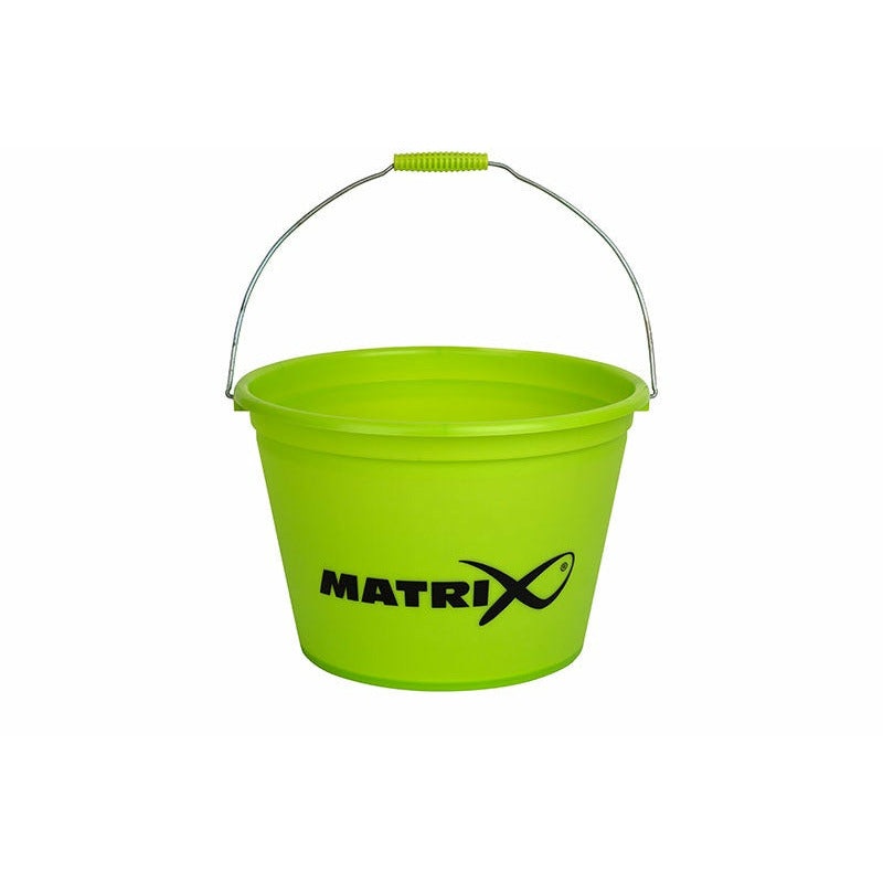 Matrix 25L Groundbait BucketLarge 25ltr CapacityStylish lime design with Matrix logoRobust Carry handle with plastic GripPerfect size for mixing groundbait on the bankCan be used to store and transport pellets and groundbait