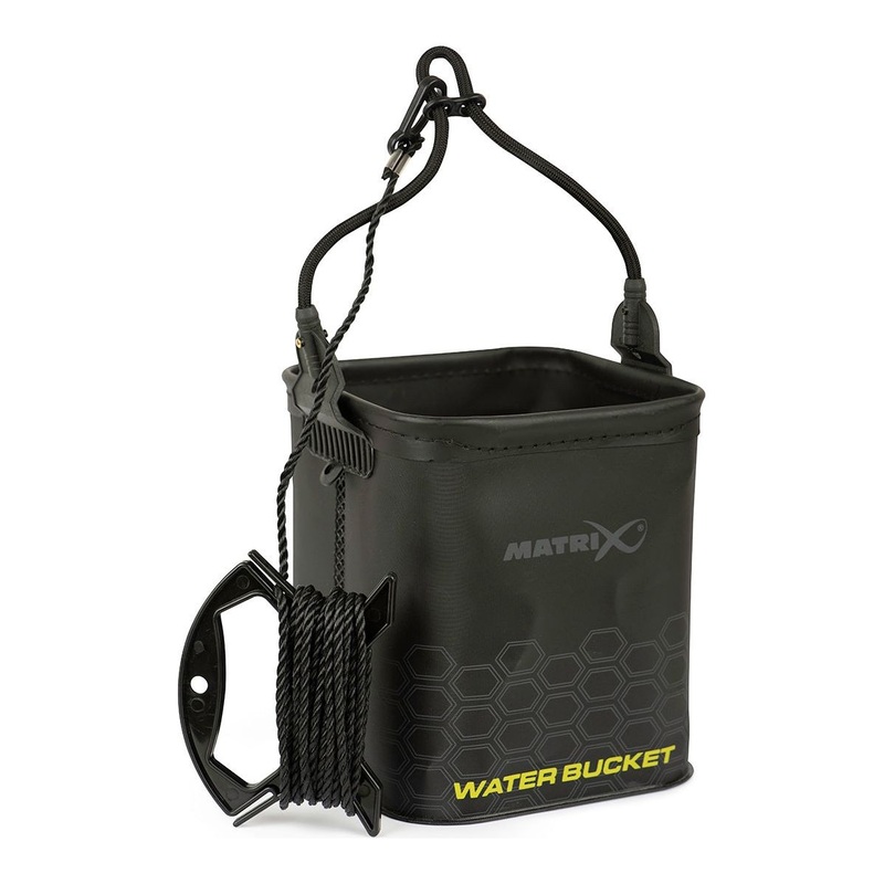 Matrix 4.5L EVA Water Bucket-Ideal for collecting water from a height-Reinforced weighted top rim-Constructed from durable 1mm EVA-Fully welded seams-5L capacity-4m detachable cord-Plastic handle / cord storage