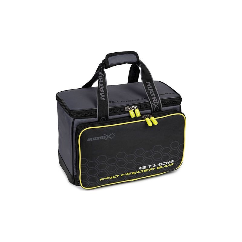 Matrix Ethos Pro Feeder Bag-Designed to carry quantities of feeders or accessories-Supplied with 3 feeder boxes-Two large feeder boxes in the main compartment-One smaller feeder / accessory box in the zipped front pocket-Ultra-hardwearing oversized zips on