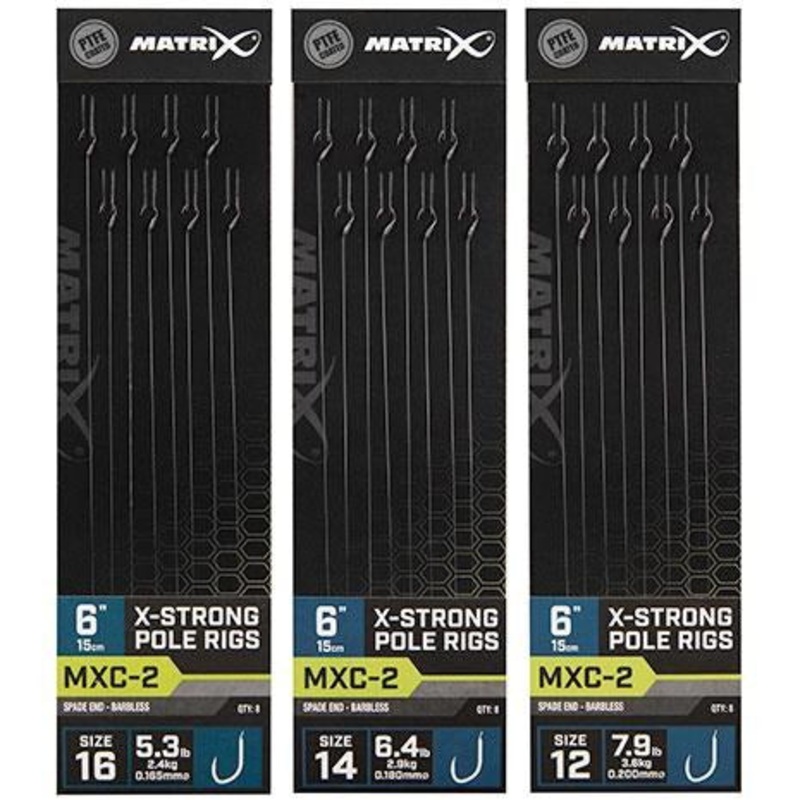 Matrix MCX-2 X-Strong Pole Rigs 15cm/6in.Designed for using as pole hooklengths on commercial fisheries.Ideal for using with bigger bait like pellets, corn, meat and paste.Developed to offer strength and durability, perfect when big weights are required.Ac