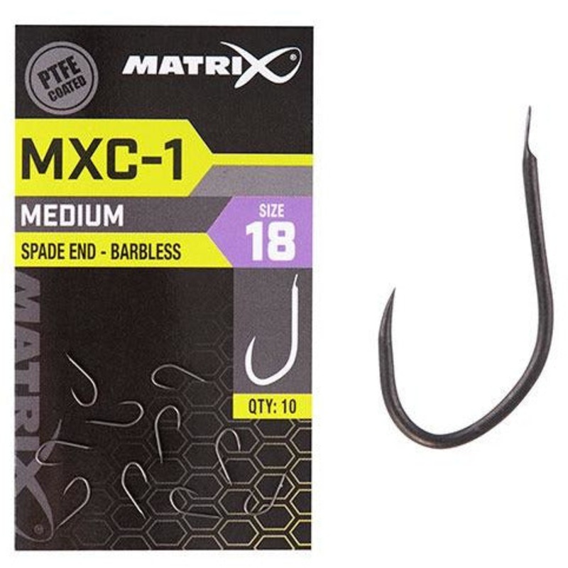 Matrix MXC-1 Barbless Spade End HooksThe MXC-1 has been designed as the go to hook for general commercial fishing. A medium gauge makes it ideal for fish of all sizes from skimmers to carp when using a variety of baits.Medium wire gauge curved point PTFE c