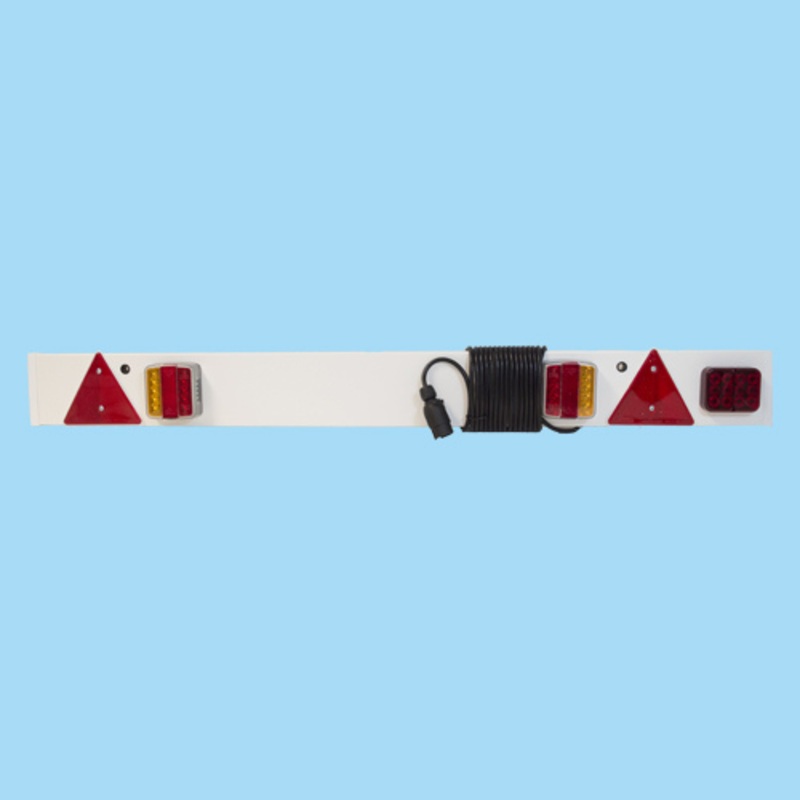 MP256PLED 1.37m LED Trailer Board With 6m Cable Plus FogE Approved Lighting ComponentsBoard length: 1.3m approx.Cable length: 6m approx.Electrics: 7 Pin (MP21B) 12 Volt.Lamps; 2 x LED, 4 function Lamps (Stop/Tail/Indicator/Number Plate) (MP8893B/8899B)Fog
