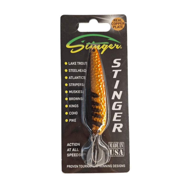 Experience the ultimate in fishing performance with the Michigan Stinger Spoon. Expertly crafted using top-quality materials, this lure boasts a realistic design and a highly durable finish. Its tournament-winning action is unmatched, delivering incredible results at any trolling speed. The curved profile and unique movement of the Stingray entice fish from far and wide with maximum flash and vibration. Perfect for cold-water species like trout and salmon, as well as pike, bass, and walleye. Plus, with premium hook and hardware, you can trust in its reliability. Made in the USA.