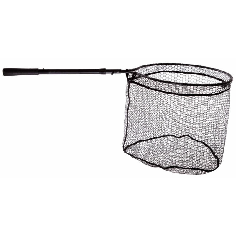 A landing net with a rubber-coated mesh and an automatic pole, that enables instantaneous extension of the landing net reach by additional 30 cm.
