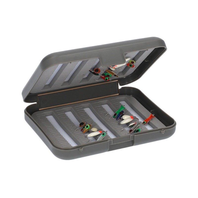 One of the smallest boxes usually utilized for a very small nymphs or other fly baits. Very handy, fitting even the smallest pocket of the fly vest.