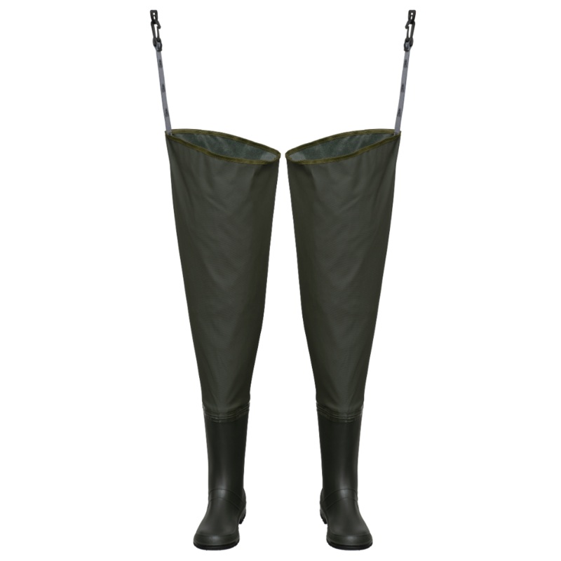 Waders made of a high-quality polyester fabric. A modern technology of welded seams guarantees that they are completely waterproof and that they have a high resistance to damages.