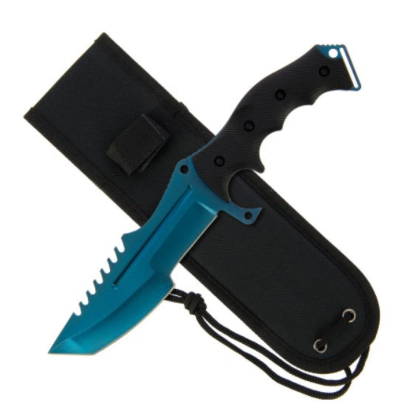Movie Style Knife Huntsman 934 | 11" Fixed Blade Blue Knife with Sheath