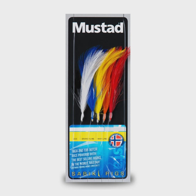 Mustad Sabiki 5 Hook Multi Coloured Feather Rig SZ1/0