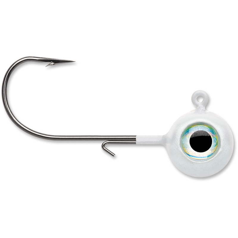 This VMC upgraded version of the traditional Aspirin-shaped heads provides added control. 3-D holographic eyes create the illusion of a wider profile while adding realism. Assembled with a VMC Premium high-carbon steel hook with top of the line black nickel finish. The wide range of colors includes UV Bright finish colors that guarantee you to catch more fish in all water conditions.