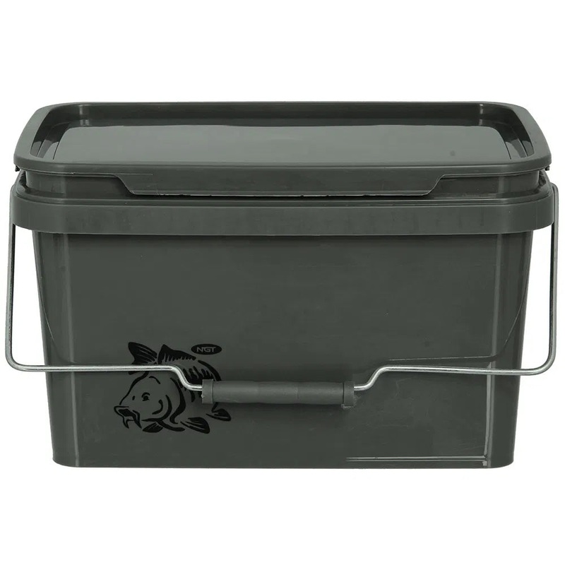 This 5-litre green rectangular bucket is perfect for storing all types of fishing bait. It features an airtight lid with four secure locking sides, ensuring a reliable seal to keep contents fresh. The sturdy metal handle is equipped with a polymer grip, ma