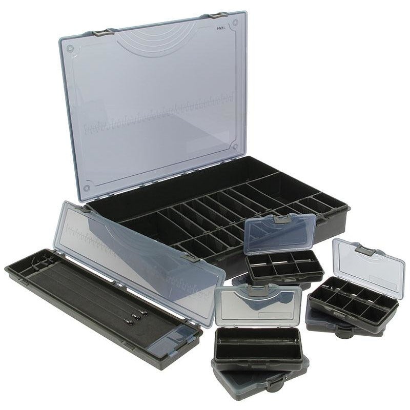 The NGT 7+1 Tackle Box is an ideal choice for keen course or carp anglers. The box measures 36.5cm in width, 29cm deep and 6cm high and is made from tough ABS polymers. The system includes 16 removable compartment dividers which allows for easy adjustment to suit individual needs, plus six small bit boxes each with a selection of compartments ranging from two to eight sections. If that wasnt enough, the NGT 7+1 Tackle Box also includes a stiff rig board with a foam insert and 20 pins.
