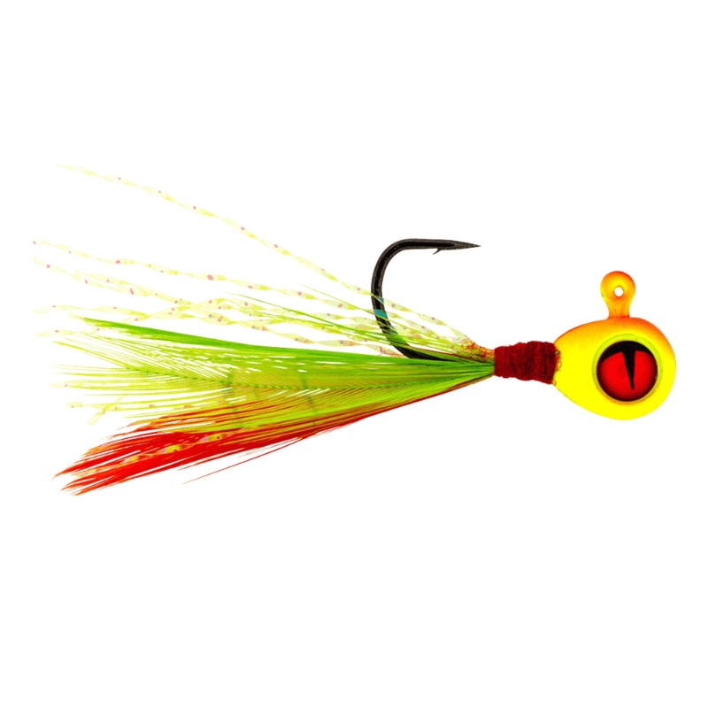 The Tungsten Crappie King Fly features all the benefits of the Tungsten Crappie King Jig with a hand-tied tail. It features an eco-friendly compact tungsten head that is 30% more dense than lead. Out the back is an ultra-sharp perfectly proportioned hook d