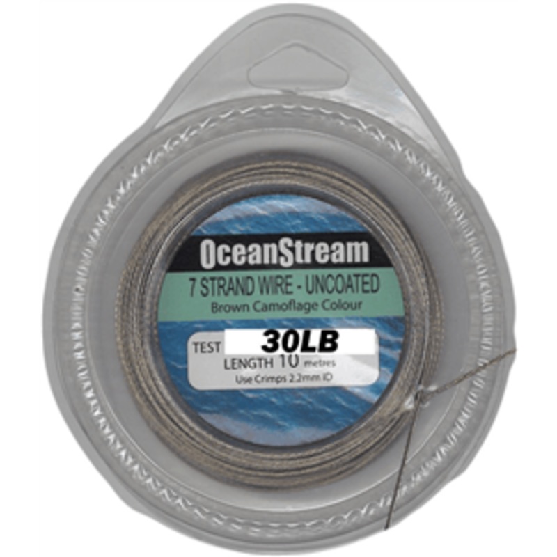 Oceanstream 7 Strand Uncoated Wire - 10m This brown uncoated wire is ideal for trolling. Comprising seven strands, it forms a robust, flexible cable that resists bites from predator fish, ensuring your bait or lure remains secure for extended periods. Supp