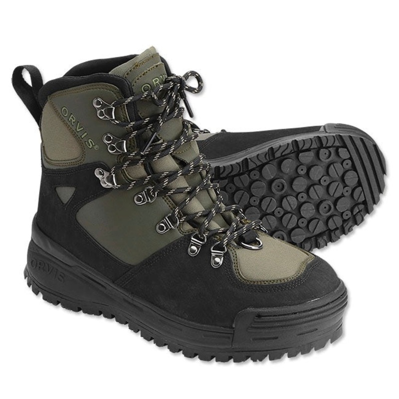 This new mid-priced boot features the best benefits found in higher-priced models. Constructed of a highly durable synthetic microfibre with scratch rubber sidewall and heel for extra protection. A moulded rubber toe cap provides great protection from rocks and adds to the overall durability. The injection-moulded EVA midsole creates a secure, comfortable foot bed that will cushion each step. A revolutionary new outsole is constructed of a dual-durometer Vibram outsole with an Orvis proprietary lug pattern to provide solid traction in a wide variety of aquatic environments. Screw-in studs are optional if an added level of traction is desired.