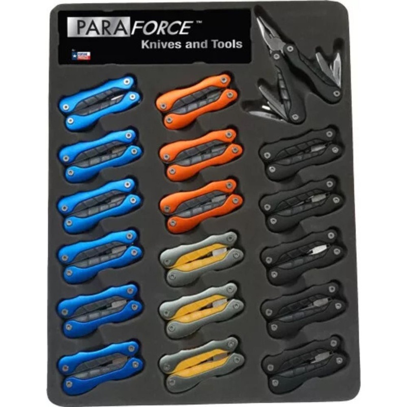 Tools include: can/bottle opener, file, screwdriver (small/medium /large), serrated knife, pliers, needlenose, and scissors