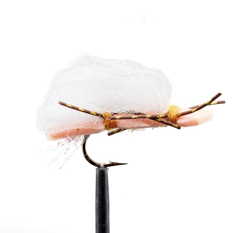 This fly pattern’s high-visibility peach color makes it an excellent choice for fishing in low-light conditions or when visibility is reduced due to water turbulence. Additionally, it’s a dependable option for prospecting in fast-moving or turbulent waters, where its buoyant foam body ensures it remains on the surface, making it highly visible and enticing to fish.