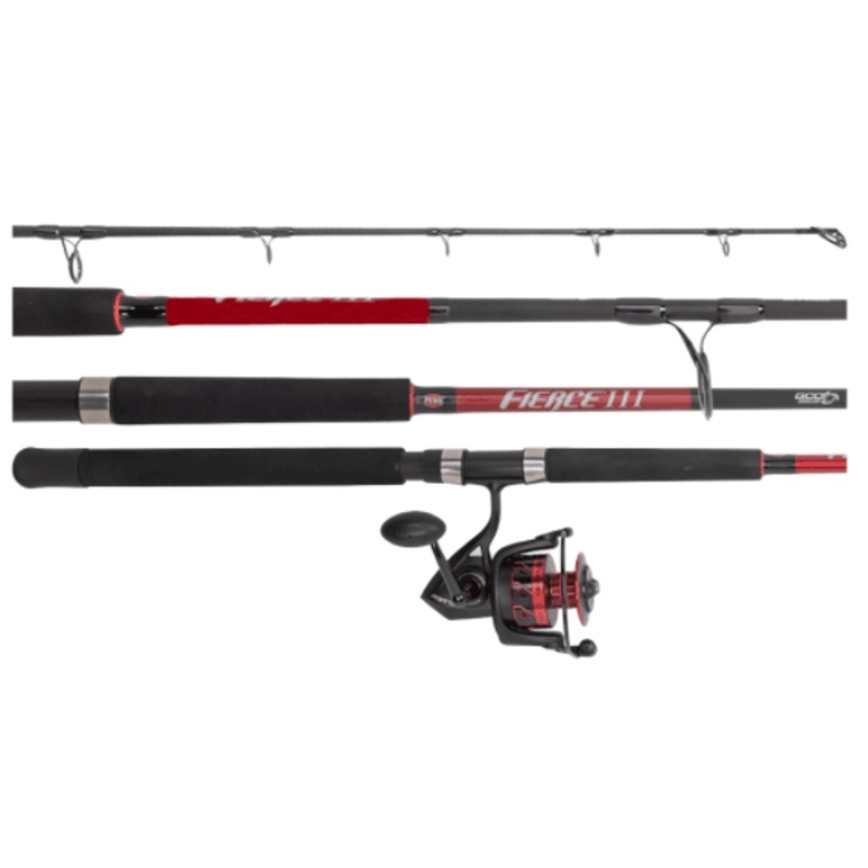 Penn Fierce 111 Spin ComboThe PENN Fierce III combo can handle anything inshore or nearshore, with the reel packing a full metal body and sideplate along with PENNHT-100 carbon fiber drag washers. A 4+1 shielded stainless steel ball bearing system ensures