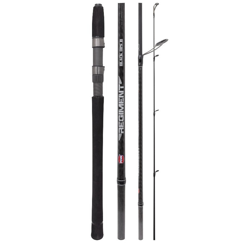 Penn Regiment Black Ops II Spin RodThe Regiment is the top of the line PENN inshore rod featuring a lightweight and sensitive 100% graphite blank. Using the distinctive tapered frame design of Fuji K guides, anglers will experience fewer wind knots as a re