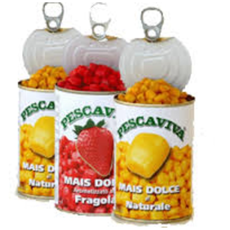 Pescaviva Flavoured SweetcornPescaviva sweetcorn cans have a ring-pull opening for convenience. The cans are also supplied with a snap-on plastic lid to facilitate storage of the contents, after the can has been opened, so that it can be used in several se