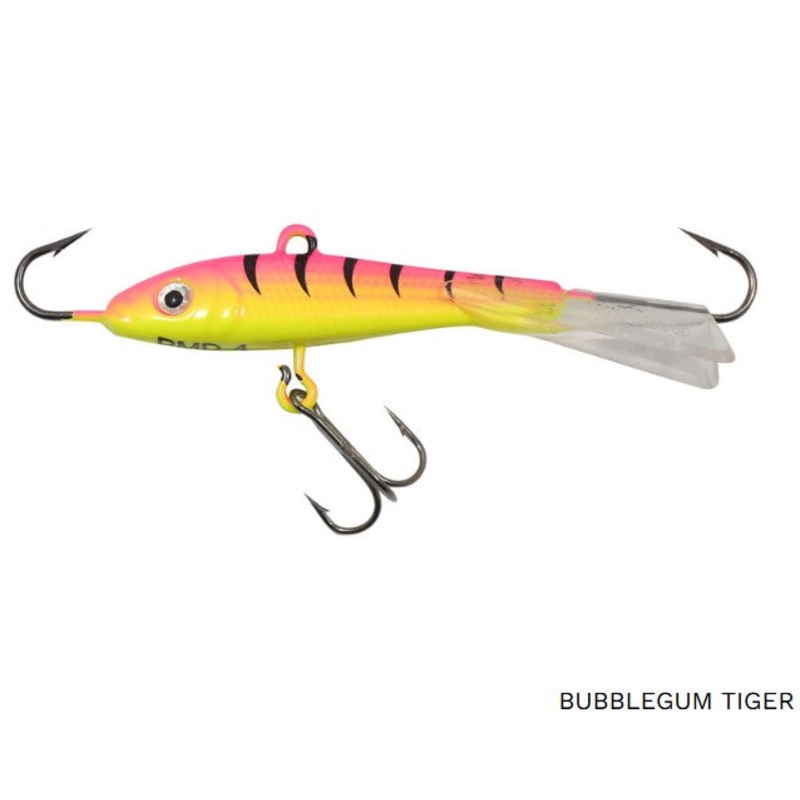 Catches bull bluegills, crappies, perch, walleyes, pike and trout year-round. Vertically jig on bottom or higher for suspended fish. Lure darts upward on the lift and swims in a semi-circle during freefall. Also triggers bites casting and when hovered or slowly raised and lowered. Fish plain or tip belly treble with a minnow head.