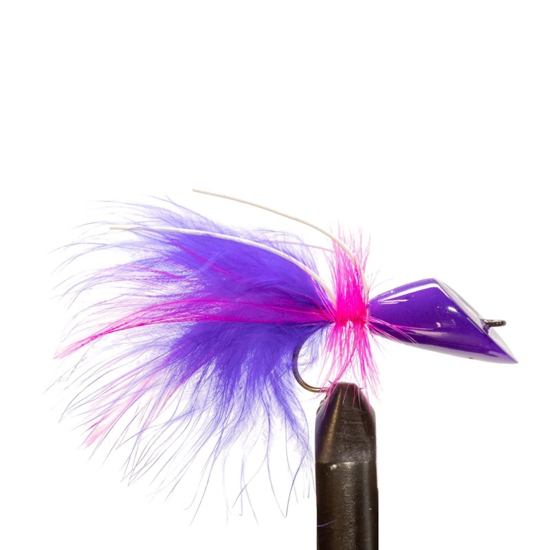 The Purple/ Pink Diver Legs is an effective fly used to lure bass. Divers are flies that can be fished along the surface at slower speeds or subsurface at faster speeds. Divers are meant to imitate everything from frogs to baitfish.