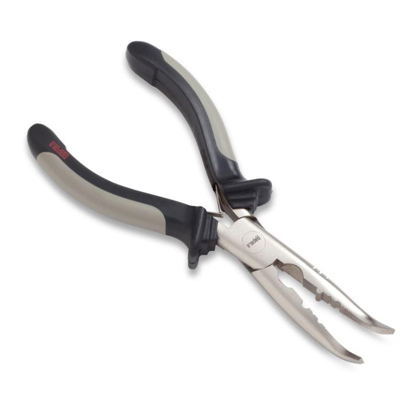 The most popular size pliers, these curved nose models help get at hard to reach hooks. Nickel plated carbon steel they include split shot crimper, a side cutter and a double leaf spring for easy, one handed operation. Also includes handy Patented Rapala l