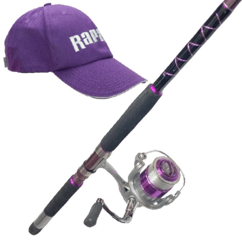 Rapala Femme Fatale Spin Rod 662SPL With Free Rapala HatFrom the Rapala combo range comes the Rapala Femme Fatale combo range. All caps come with a free hat. With 5 ball bearing reel spooled with line, and durable solid tip rod with EVA grips.