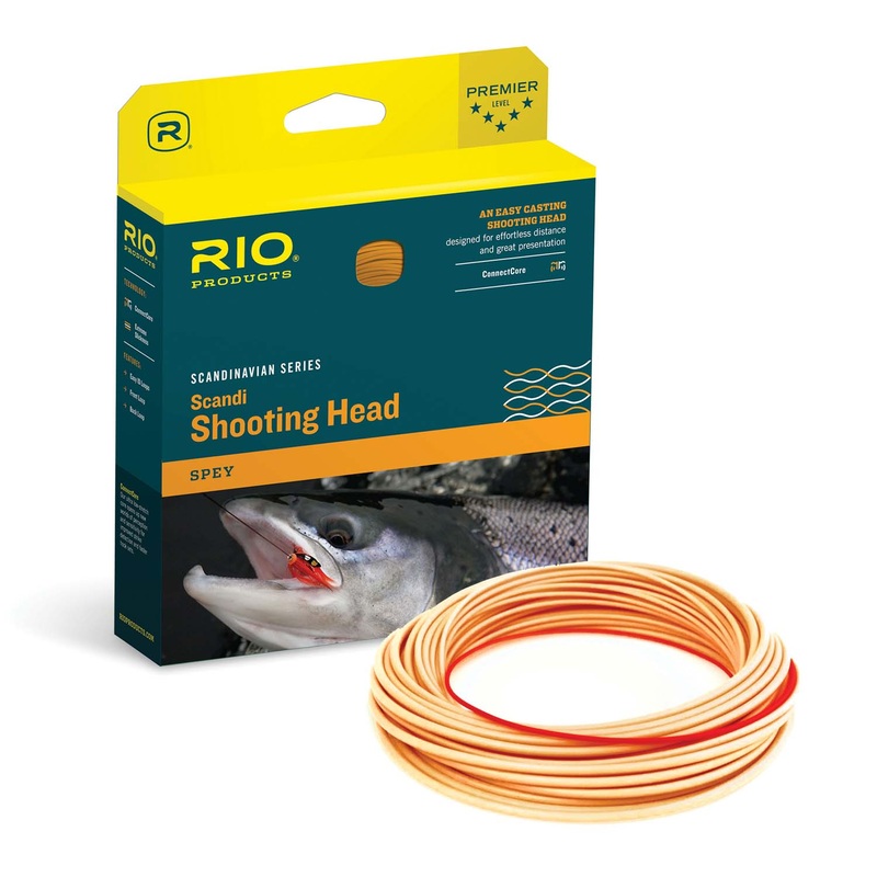 The RIO Scandi head is a very easy casting Scandi style shooting head, built on RIOs ultra-low stretch ConnectCore for the utmost in casting control and sensitivity. It is available in a multitude of lengths and weights to cover all rod and angling situations. For tight casting spots and the utmost in ease of casting use a head length that is between 2.5 and 3 times the length of the rod, thus a 14 ft rod would work best with a head that is between 35 and 42 ft in length. The shorter the head length, the tighter the back casting space an angler can fish in. With more room and better casting skills a longer head provides the angler with less line to strip in between each cast and more fishing time.