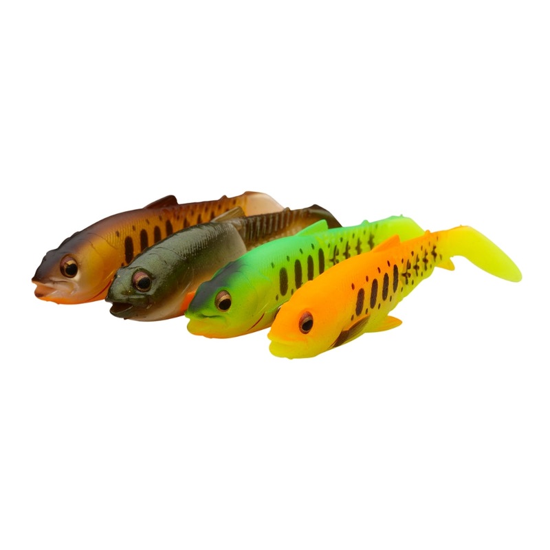 Crafted and designed by legendary designer Mads Grosell. The lure profile is inspired by a baby trout smolt, with the classic Cannibal open mouth, a realistic big soft eye and a new unique tail bridge design, that enables the lure to swim amazingly life-like even at very slow speed. The lure swims equally well on retrieve and as on the drop and the tooling making and handcrafted details and painting set new standards for soft lure making! This paddle tail loose body lure will catch just about any predator fish out there!