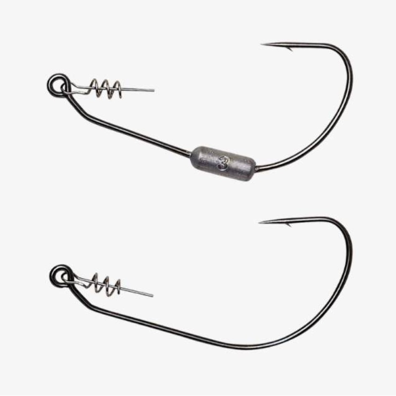 Perfect medium gape, forged Carbon steel hooks, with easy clip on large eye and mounted stainless steel centerpin corkscrew. Ultra-sharp needle point with micro barb.
