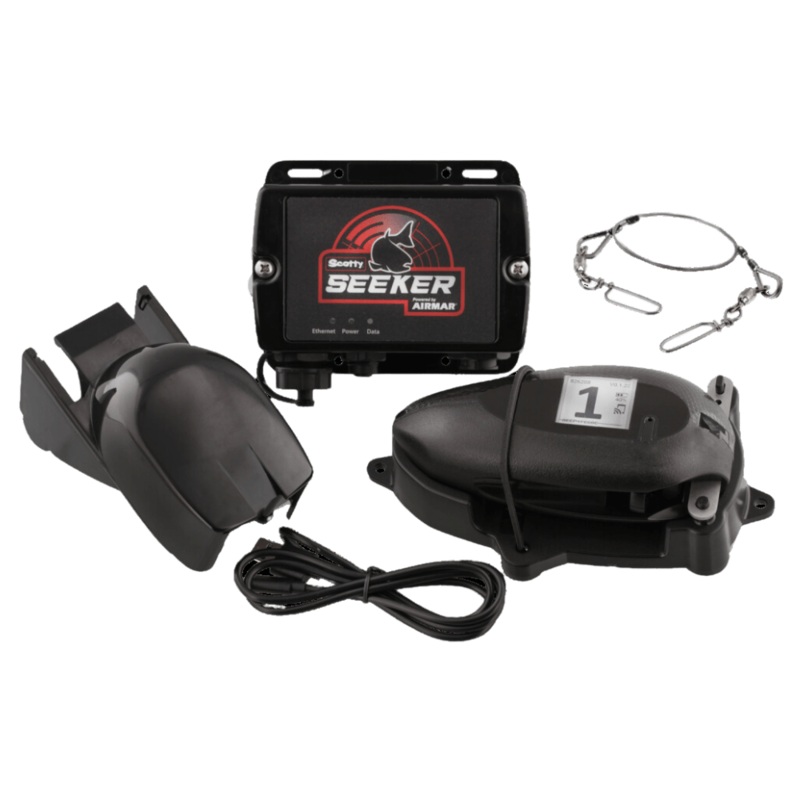 The Scotty Seeker represents a radical advancement in downrigger trolling technology, providing anglers with a clear, straightforward method to monitor water conditions.Whats in the box:ProbeHydrophoneStainless steel leaderPower cableCommunication hubCharg