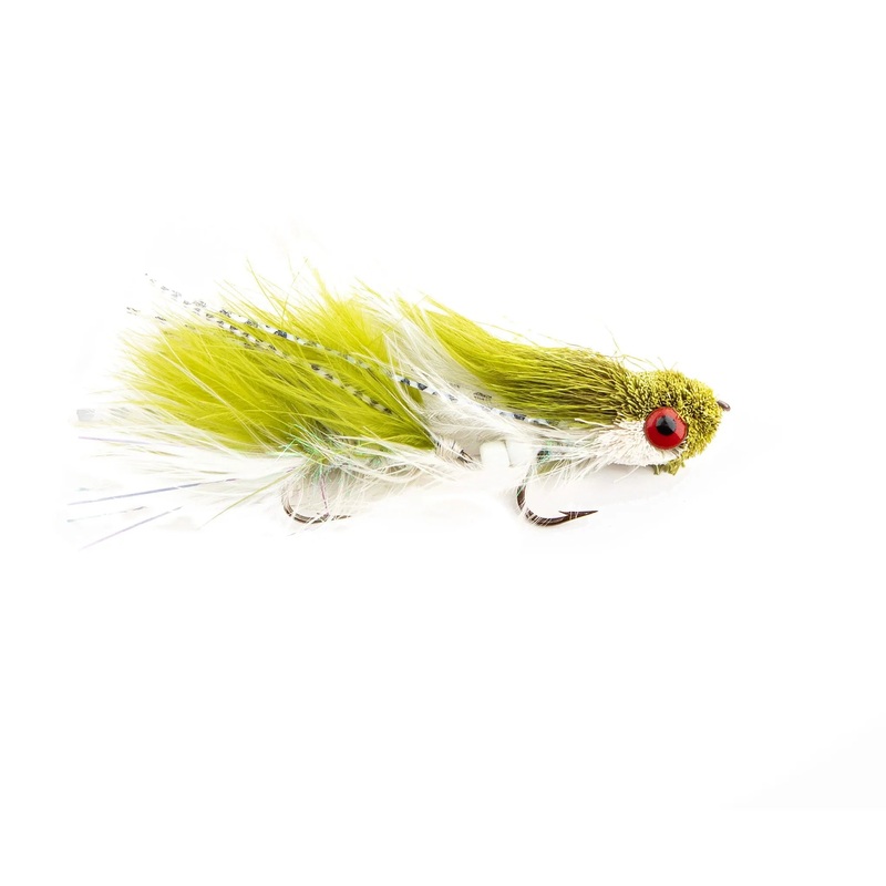 To fish the Sex Dungeon – Olive/White effectively, cast it along banks, into deep runs, or near submerged structures where predatory fish lie in wait. Retrieve it with aggressive strips or a jerk-strip technique to create an erratic fleeing motion, mimicking a distressed baitfish. Available in size #4 (approximately 4 long) and size #8 (approximately 2.5 long), this fly is a must-have for streamer anglers chasing big fish.