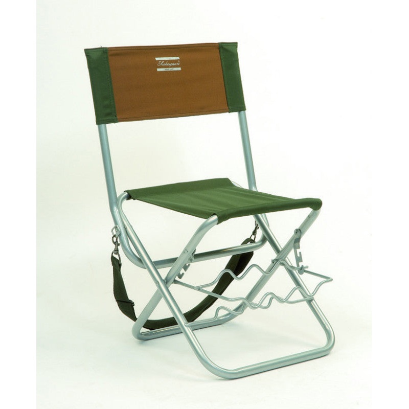 A lightweight folding chair with strong canvas seat and back, cleverly incorporating an adjustable rod rest.Detachable shoulder strapFolded size 54cm x 43cm