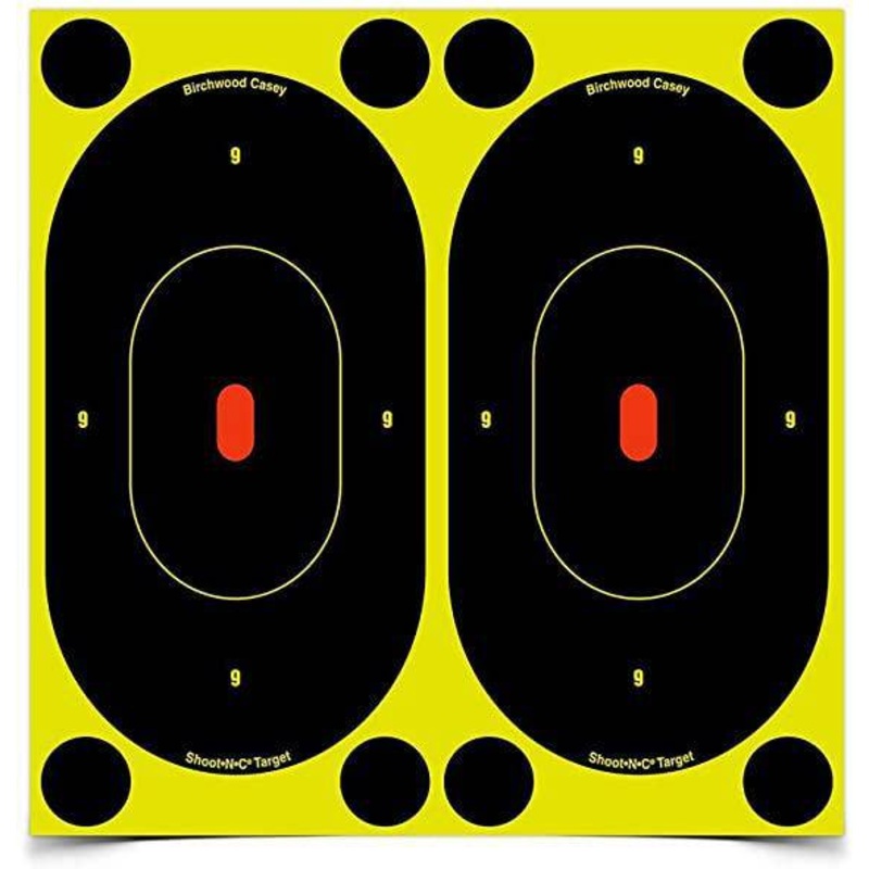 Observe your accuracy and shooting performance, without taking the time to walk to the target with Birchwood Casey Shoot-N-C Self-Adhesive Targets! Birchwood Casey Shoot-N-C targets tear in color upon impact, creating a bright yellow ring around the point of impact, offering visual cues of how to adjust your scope or shooting angle without interruption. Simply apply these adhesive targets to an existing target or penetrable backstop, and practice accurate shot placement. Extend the life of your Shoot-N-C Targets by applying the included paster patches over shot marks. Imported.