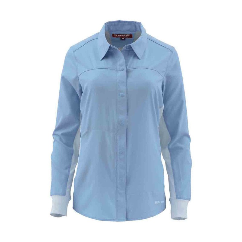 Simms’ Bicomp shirt for women is designed to provide comfort and performance on the water. It’s made with COR3 technology that wicks moisture, dries quickly and offers UPF 30 sun protection. A zippered fly-box compatible pocket provides storage space, and a sunglass chamois is located inside the bottom hem. Features Quick-drying, wicking & UPF 30 1 zippered, fly box-compatible side-seam pocket Low-profile plastic snaps at front placket Knit sides & sleeve panels for added comfort Sunglass chamois inside bottom hem