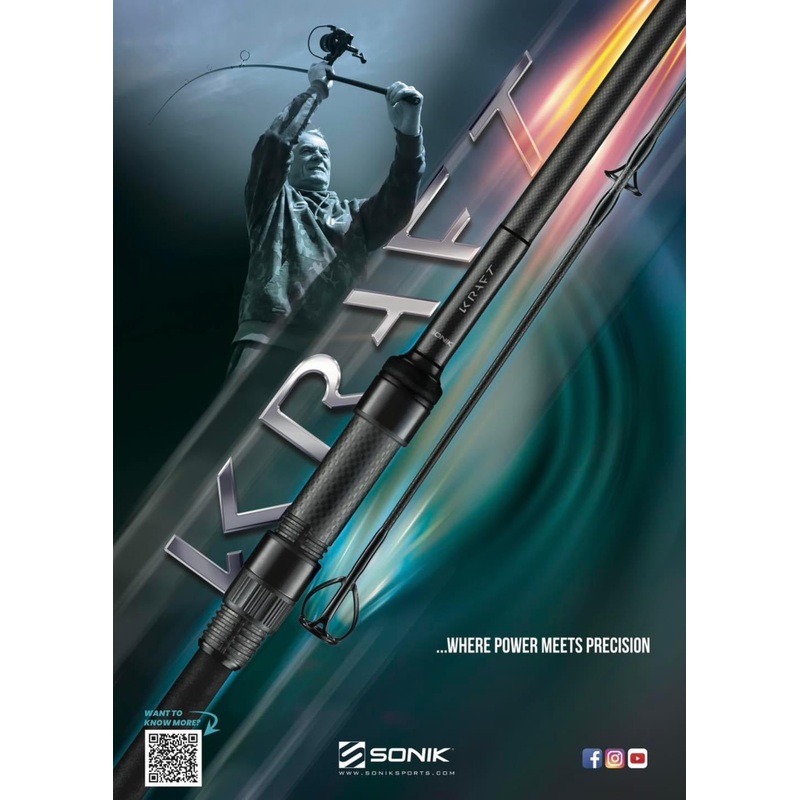 Sonik Kraft Carp RodsIntroducing a new weapon in the Sonik line up. The Sonik KRAFT carp rod has been designed with cutting-edge carbon technology and meticulously crafted to optimize casting distance. It utilises a number of carbon technologies that were